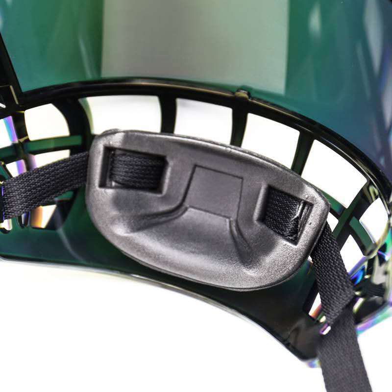バイザーには特殊なコーティングが施されています。内側には曇り止めコーティングが施されており、湿気の多い状況でもクリアな視界を保ち、若いプレーヤーがいつでも優れた視認性を維持できます。外側の傷防止コーティングがバイザーを傷や摩耗から保護し、長時間使用した後でも新品の状態を保ちます。